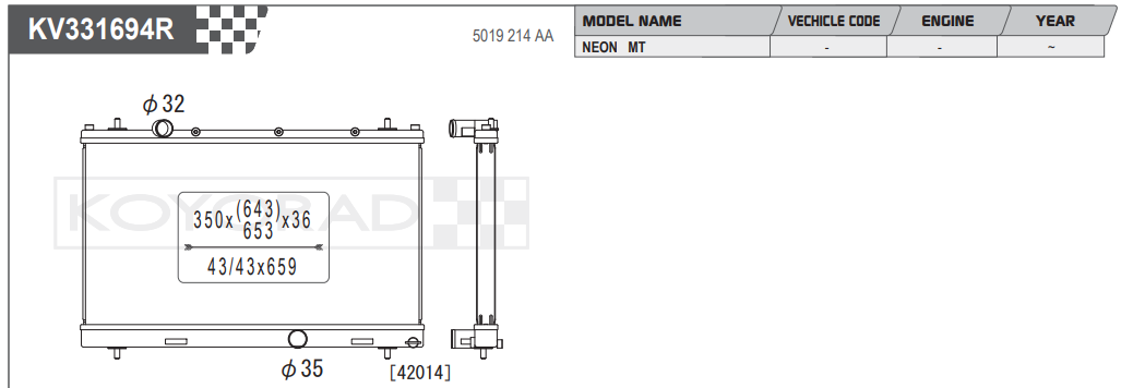 Koyorad: Alloy Radiator: Neon 2.0 i Man. '99-’04