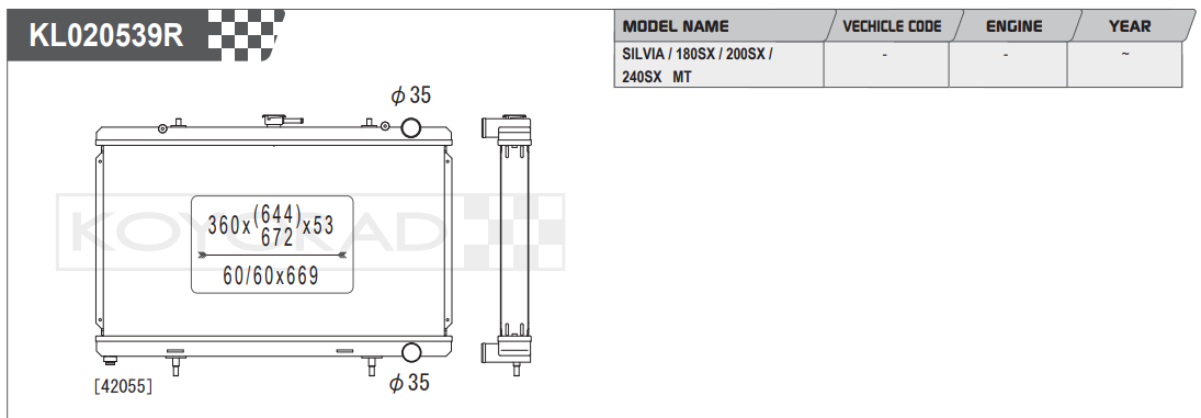 Koyorad: Alloy Radiator: Nissan Silvia KA24 53mm Core Wider Fin Pitch